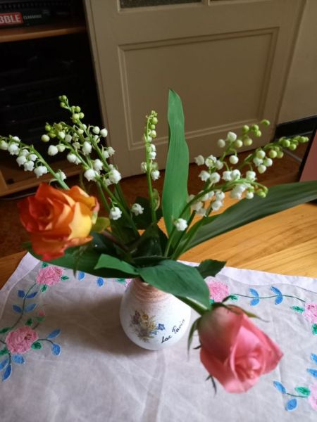 Je vous souhaite à tous du bonheur et je vous offre ces brins de muguet en photo.