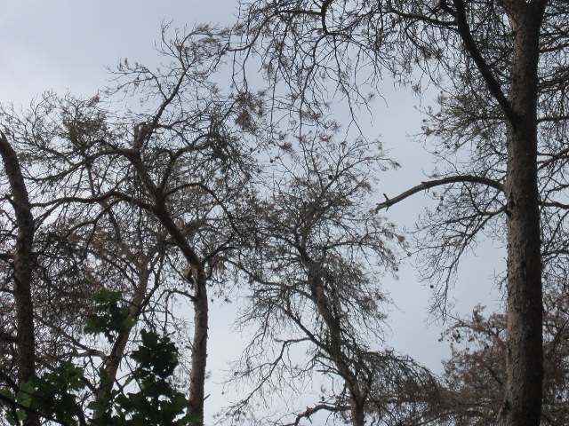 Ces pins desséchés à l’écorce lépreuse montrent la création en souffrance et son gémissement.